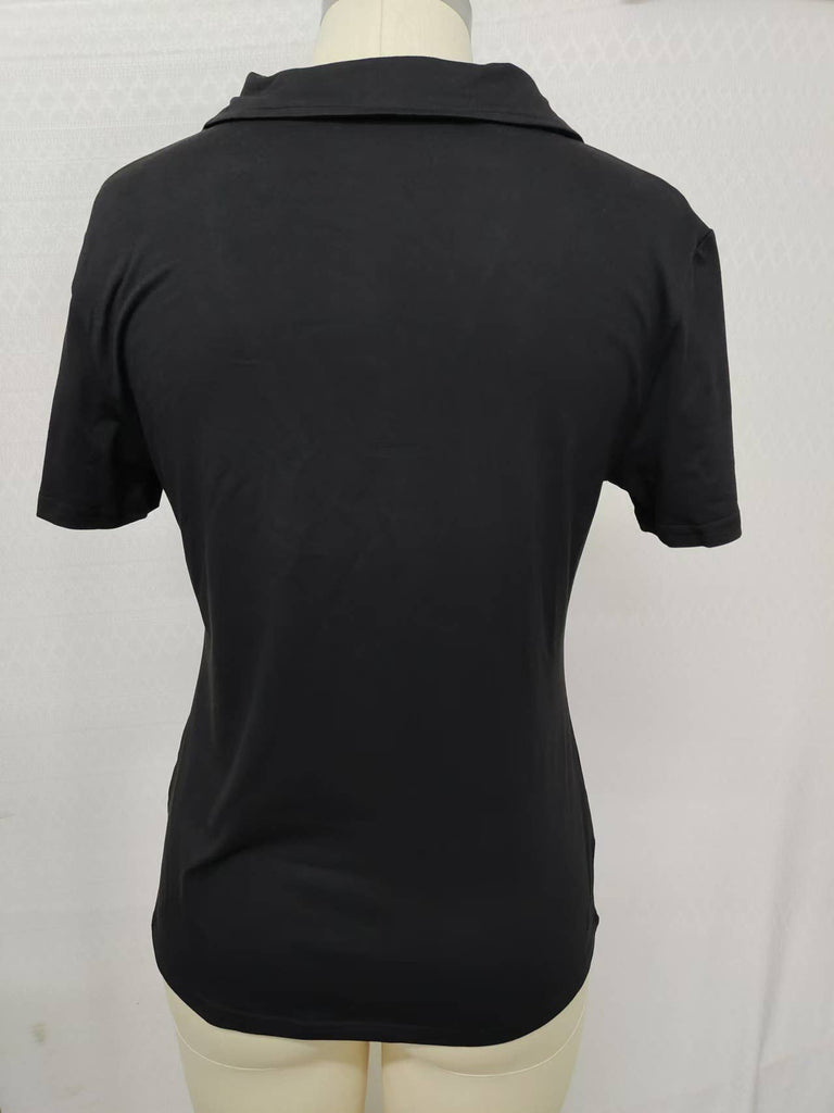 Casual V-Neck Solid Color Collared Short Sleeve Top ZK2815